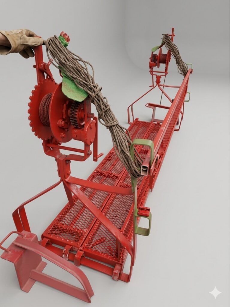 Un andamio colgante es una plataforma de trabajo suspendida desde una estructura superior. Se desplaza verticalmente para permitir el acceso seguro a zonas elevadas como fachadas de edificios, puentes, torres u otras superficies verticales.